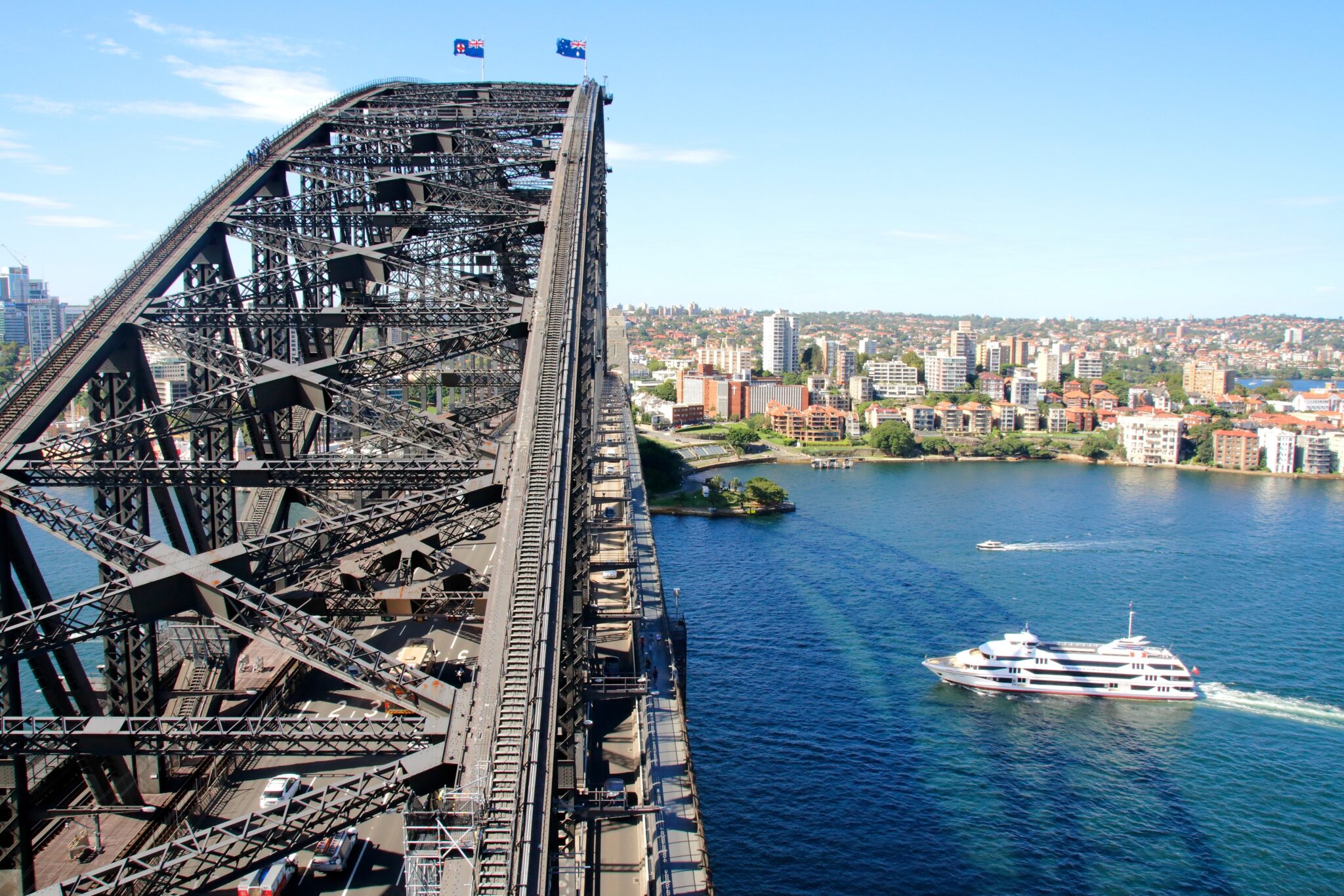 Die Harbour Bridge, die auch „Kleiderbügel“ genannt wird und sich über den Hafen von Port Jackson in Sydney wölbt, ist eines der Wahrzeichen Australiens, ähnlich wie das Opernhaus in derselben Stadt. Sie ist derzeit die fünftlängste Stahlbogenbrücke der Welt, aber unter den Stahlbrücken ist sie die höchste: Der höchste Punkt ihres Bogens ragt beeindruckende 134 Meter über den Wasserspiegel.
