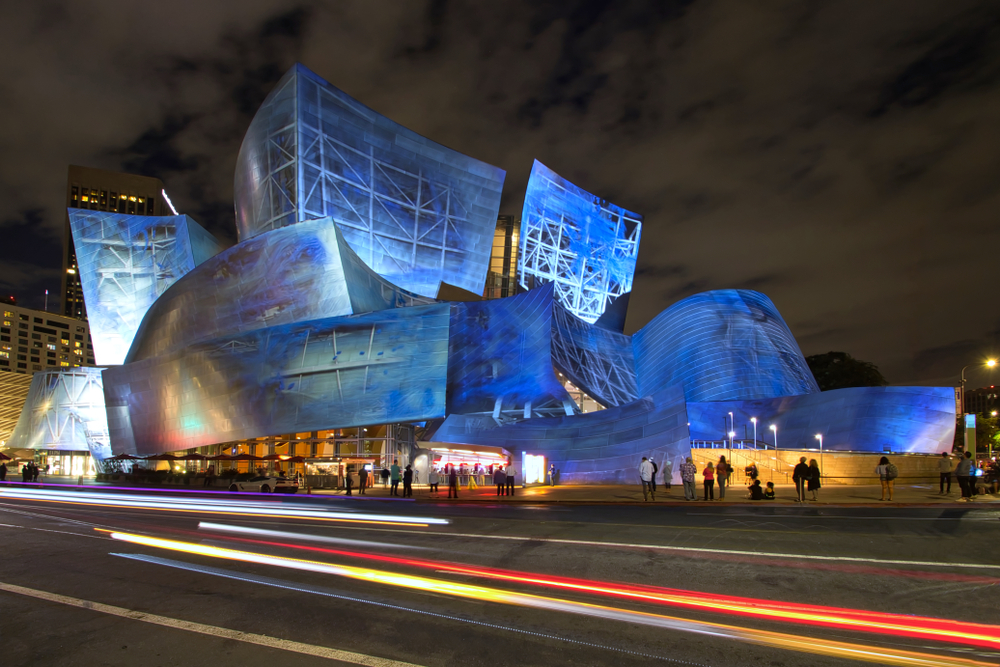 Frank Gehry legte den ersten Entwurf des Gebäudes schon im Jahr 1991 vor, aber auf die Eröffnung der Walt Disney Concert Hall musste sie noch bis zum Jahr 2003 warten. Die äußere Hülle des Edelstahlgebäudes ähnelt den Segeln eines im Wind schwankenden Schiffes, und die polierte Oberfläche spiegelt nachts die reichen Lichter der „Stadt der Engel.“