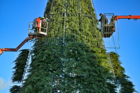 Falls sich die Weihnachtsdekoration in Ihrer Firma nicht nur auf einen Kunstbaum und Weihnachtskugeln beschränkt, und Lichterketten und Schmuck fürs Exterieur einschließen wird, ist es besser, diese Aufgabe Experten zu überlassen, damit es zu keinen Betriebsunfällen oder Beschädigung der Halle kommt.